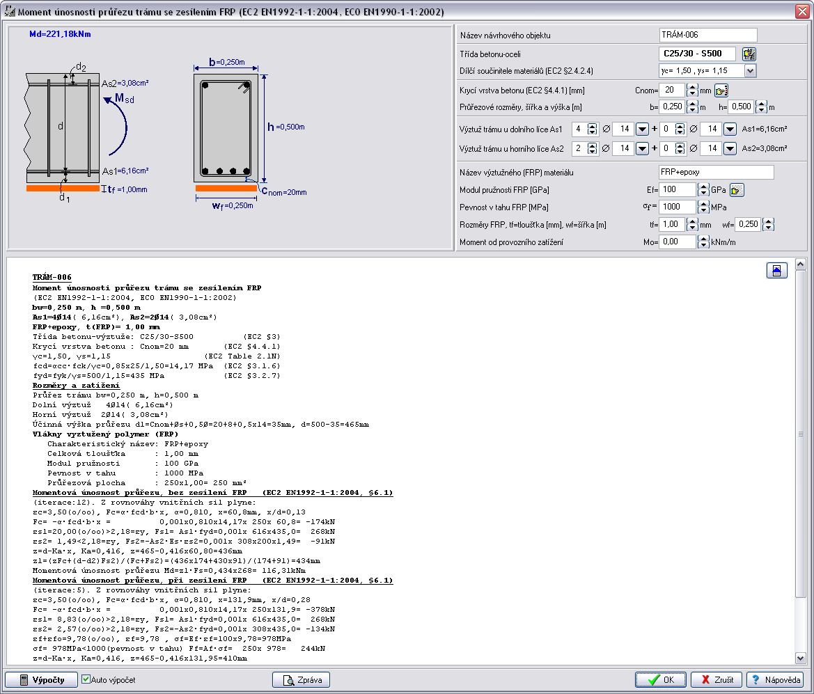 | M únosnosti prierezu trámu s FRP | M únosnosti T-prierezu trámu | M únosnosti T-prierezu trámu s FRP |